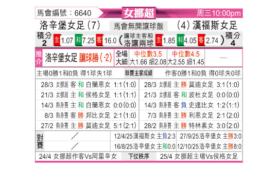 [挪女超] 罗森博格女足vs侯尼霍斯女足