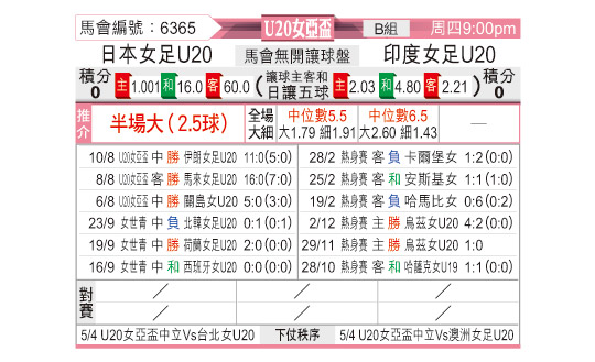 [亚女青] 日本女足U20vs印度女足U20