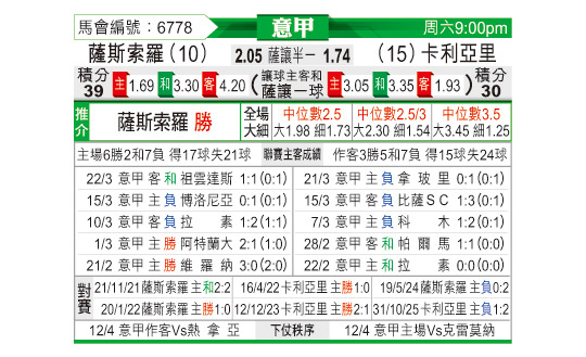 [意甲] 萨索洛vs卡利亚里