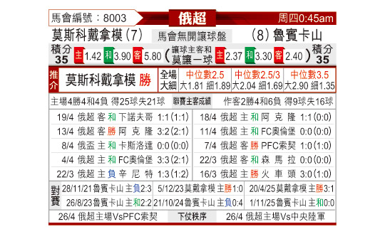[俄超] 莫斯科迪纳摩vs喀山红宝石