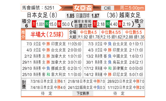 [女亚杯] 日本女足vs越南女足
